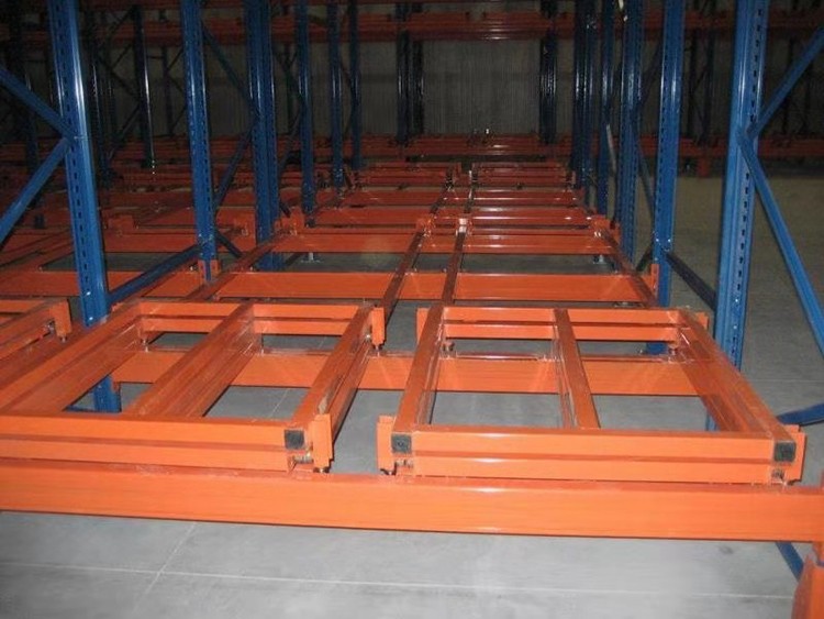 1、壓入式貨架是由托盤小車等典型結(jié)構(gòu)件組成,托盤車具有可流動特性,貨物被規(guī)定于貨架的一端進出,并遵循先進后出順序。